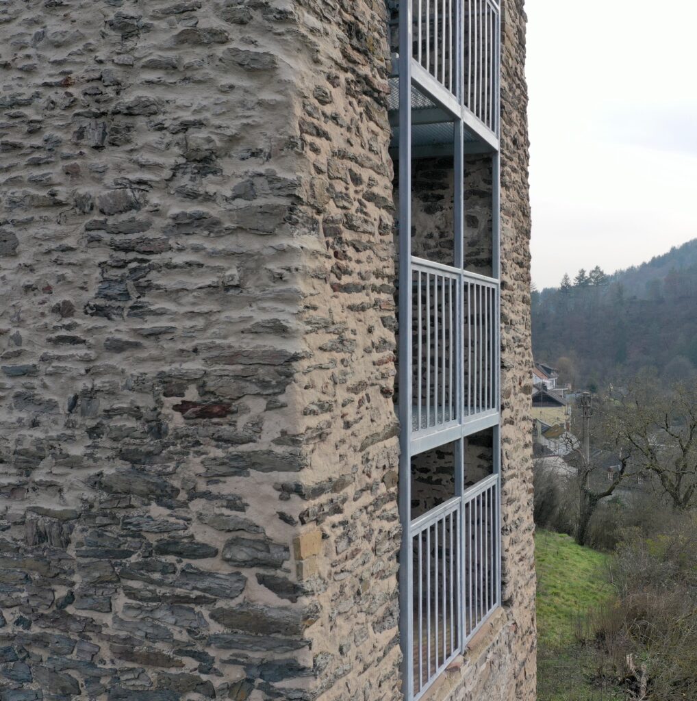 Neue Aussichtsplattform und Treppe in denkmalgeschützten Aussichtsturm